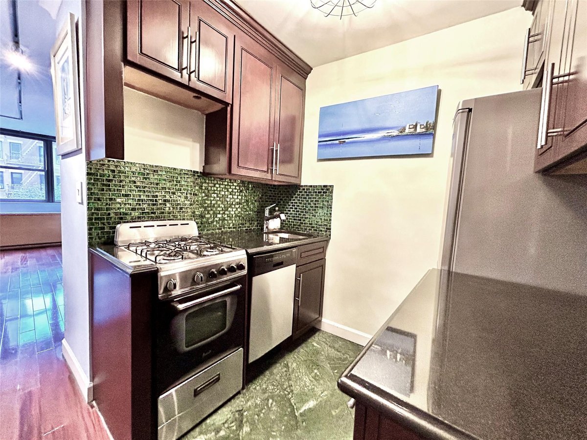 The apartments in The Murray Hill Crescent offer bright and light-filled living spaces, with many units featuring high floors and large windows that provide clear views of iconic New York City landmarks. The units have been fully renovated and boast modern features and finishes, including crown molding and wood floors. The open kitchens are equipped with granite countertops and GE stainless steel appliances.